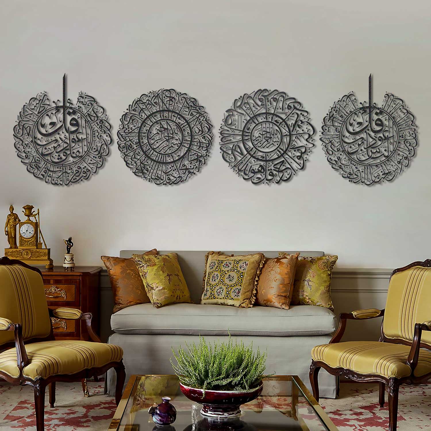 4 Quls Metal Islamic Wall Art, Set of 4 Pieces