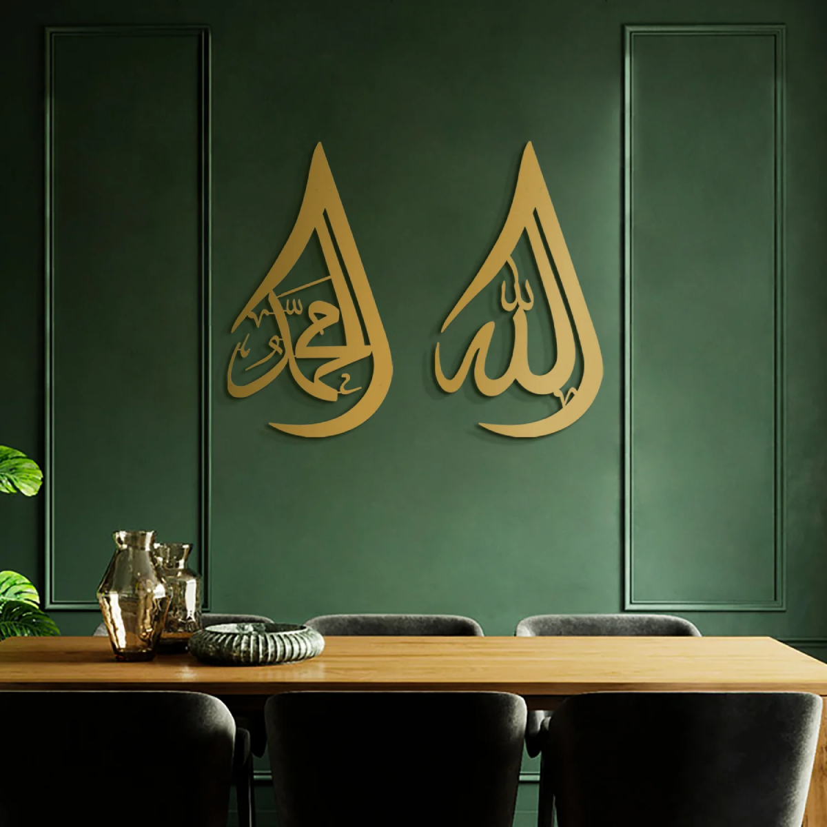 Allah and Muhammad Teardrop Metal Wall Art, Set of 2 Pieces
