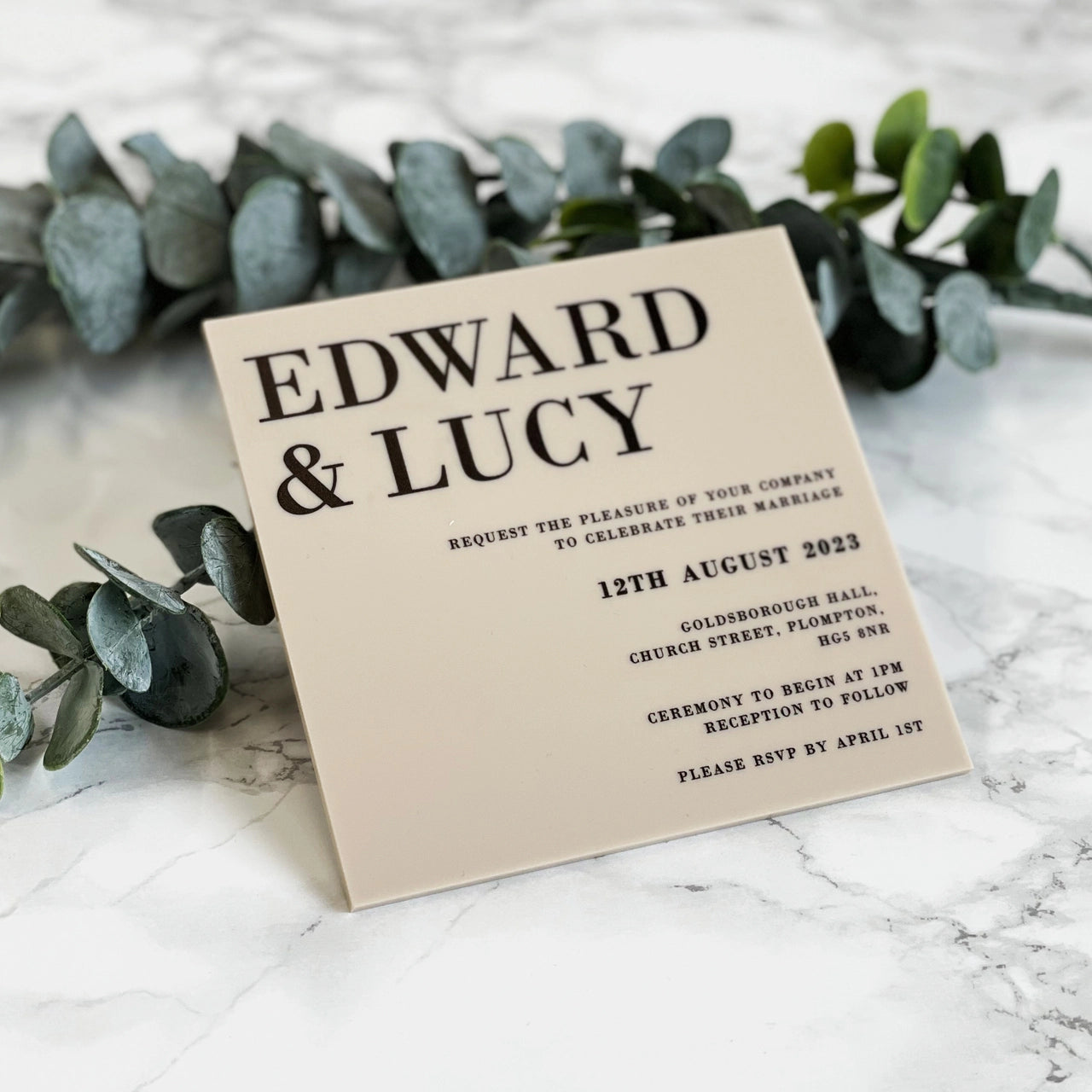 Our beautifully handcrafted Acrylic Wedding Save The Dates printed with either white or black text are perfect for adding luxury and elegance to your wedding stationery.
