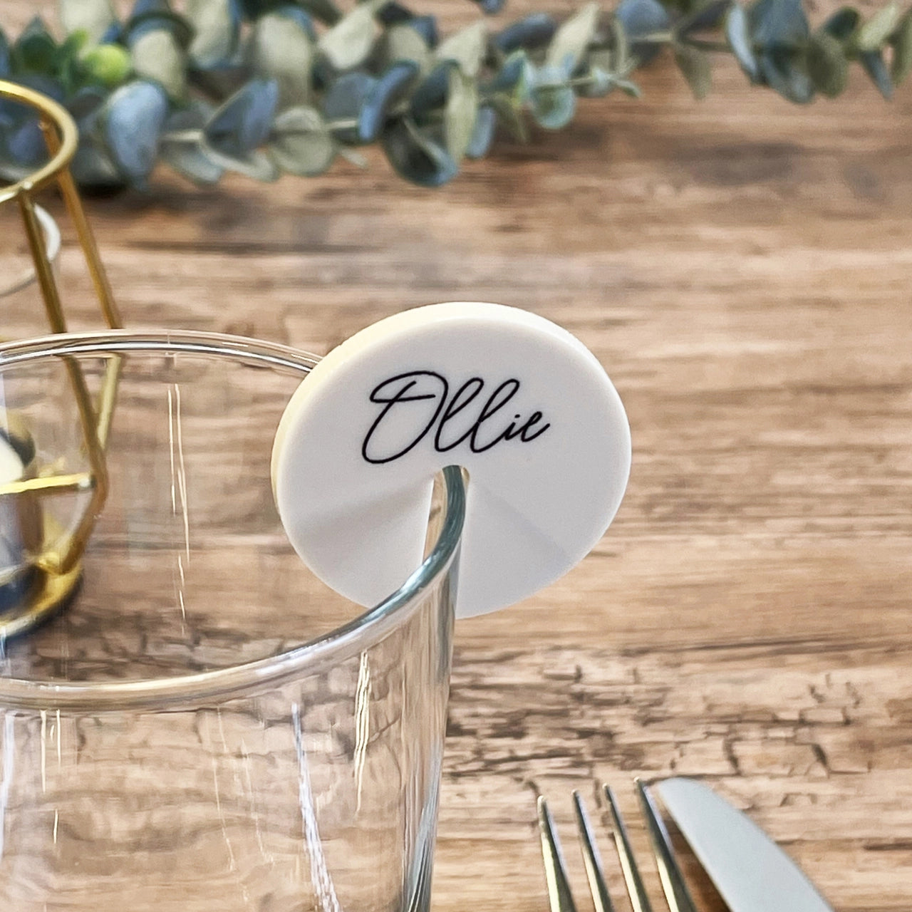 Personalised Acrylic Name Place Wine Cocktail Champagne Glass Charm – gold-mirror