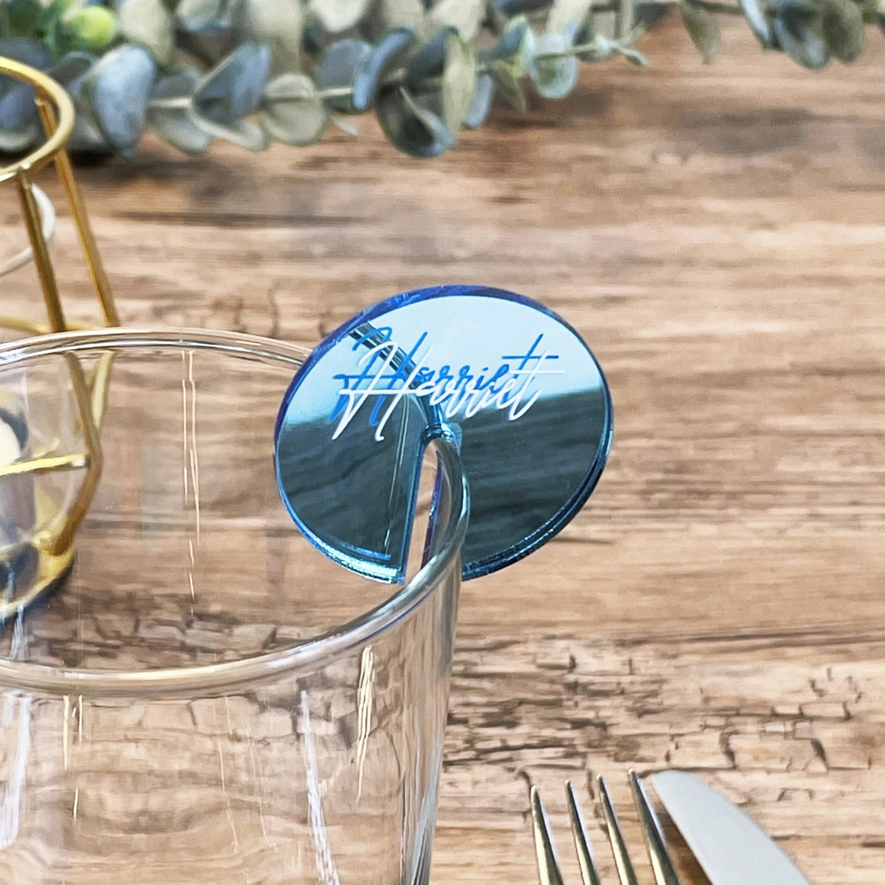 Personalised Acrylic Name Place Wine Cocktail Champagne Glass Charm – gold-mirror